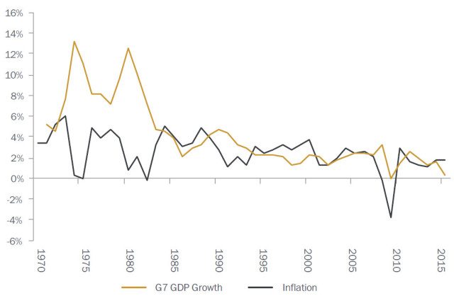Figure 2: Lower volatility in growth & inflation from mid-1980s
