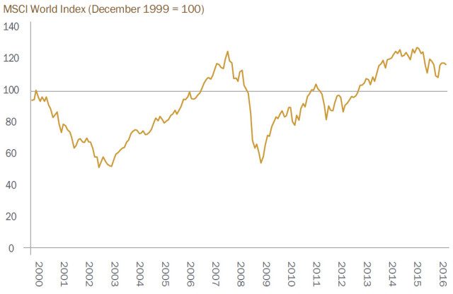 Figure 3: Gyrations in the MSCI World Stock Market Index since 2000