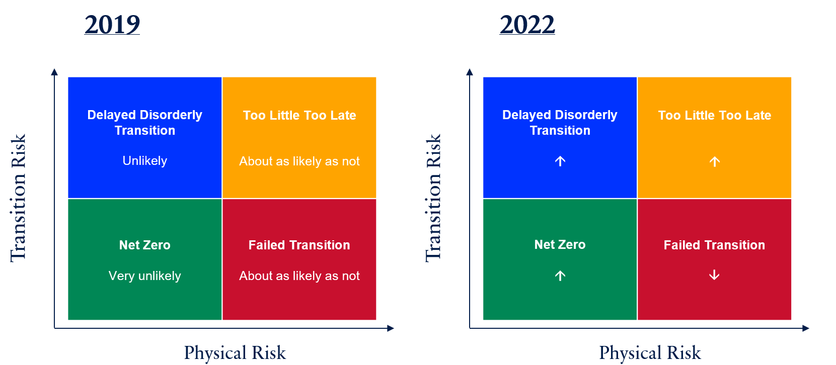 Figure 3: Climate scenario probabilities in 2019 vs 2022